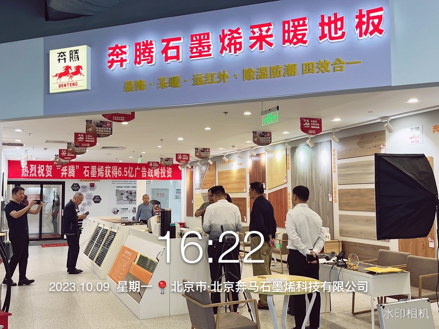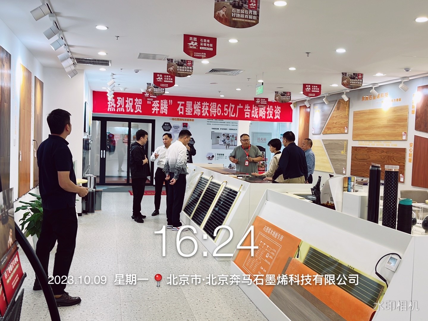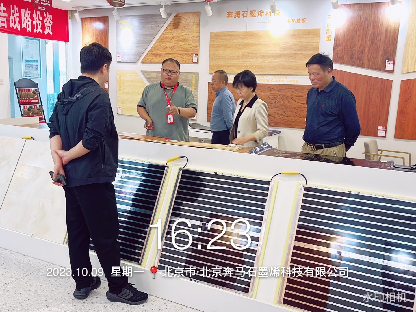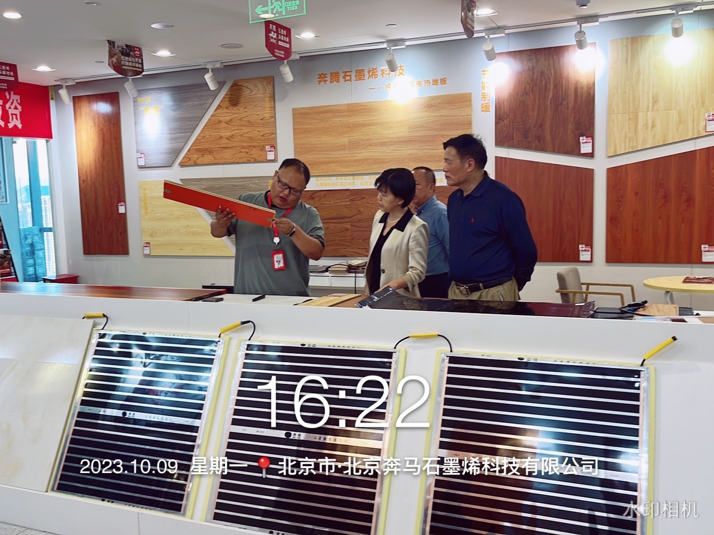 接下来,吕经理给领导们讲解了奔腾的产品,从石墨烯采暖地板到封装膜,裸膜,发热壁画,光波能量房,对产品的技术、基材、施工、温度、市场进行了细心的讲解。